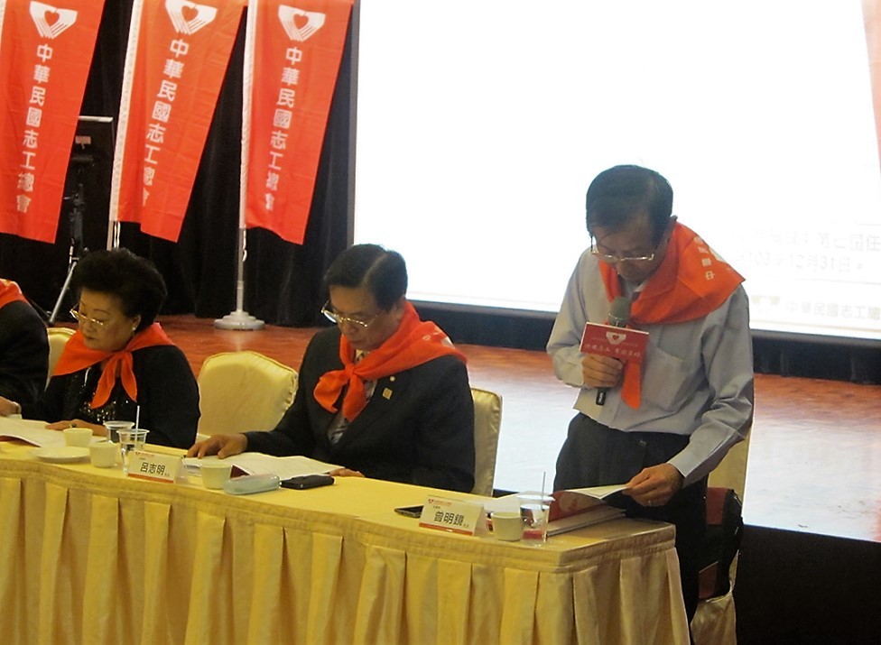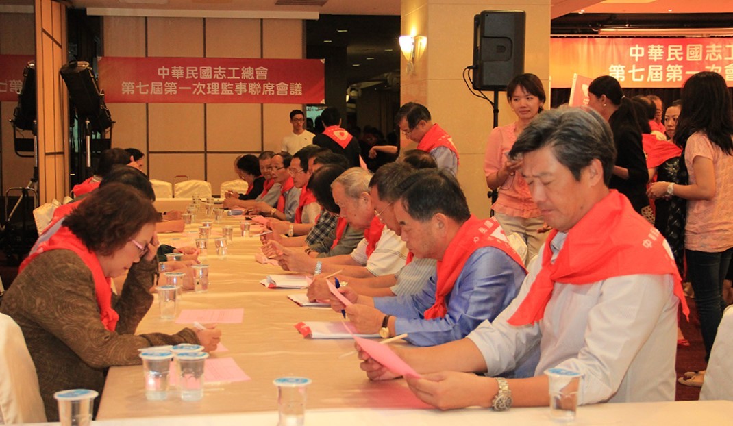 中華民國志工總會第七屆第一次會員大會紀錄 時間:中華民國103年10月19日(星期日)下午1:30整 地點:台中全國大飯店國際會議廳(台中市西區館前路57號B1) 中華民國志工總會第七屆第一次理監事聯席會議議程 開會日期:中華民國103年10月19日(日) 下午15時30分 開會地點:台中市全國大飯店(台中市西區館前路57號F1)