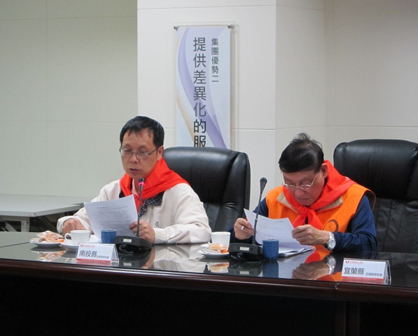 全國第四屆志工之星歌唱大賽第一次籌備會議 一、開會日期:中華民國105年4月13日(星期三)上午10:30 二、開會地點:台中市西區台灣大道二段307號24樓 【中華民國志工總會24F國際視訊會廳】 三、出席單位:中華民國志工總會、宜蘭縣志願服務協會、南投縣志願服務協會、臺南市臺南都志願服務協會
