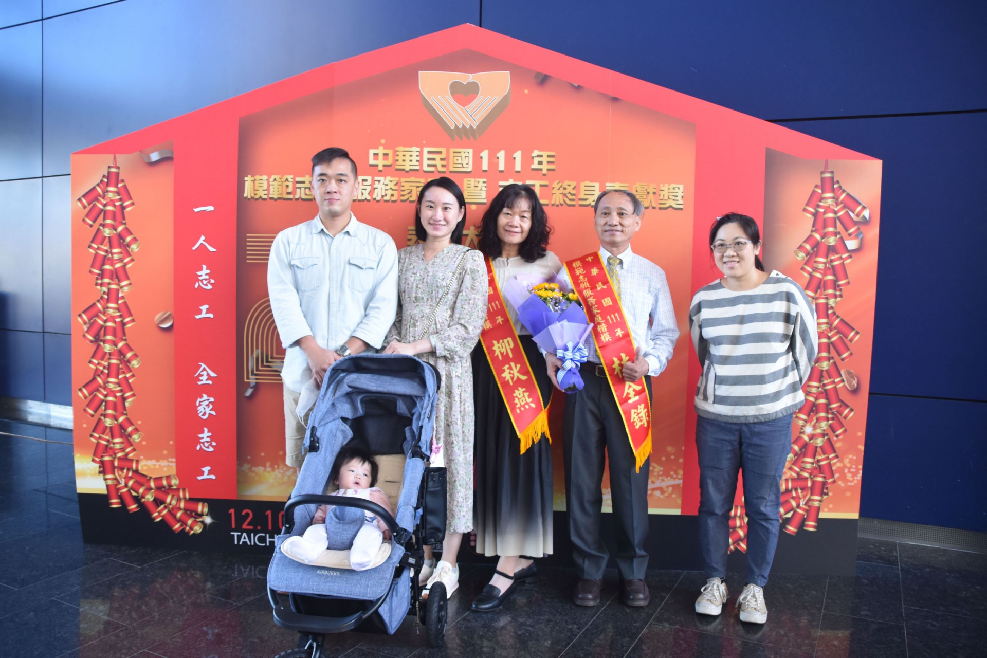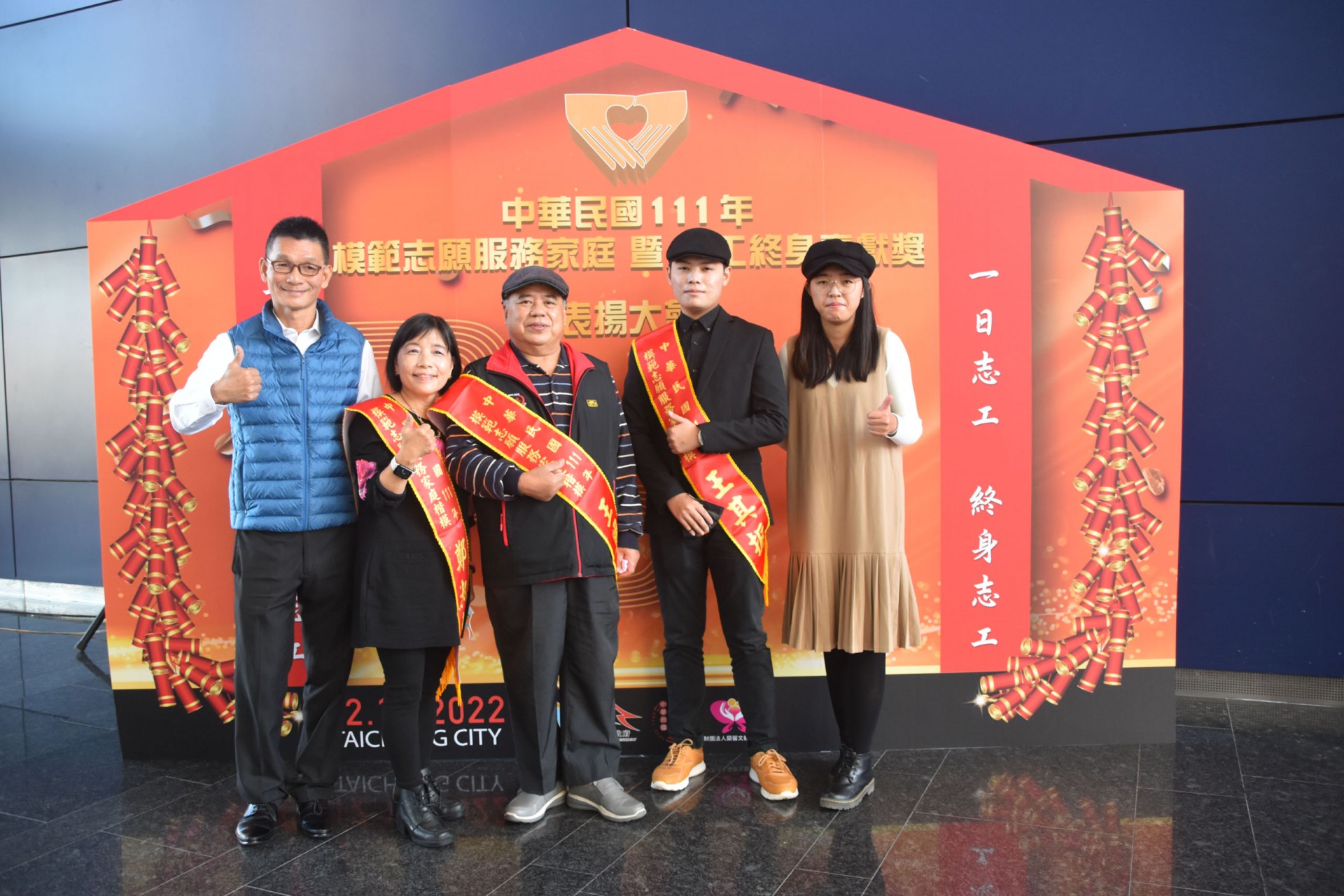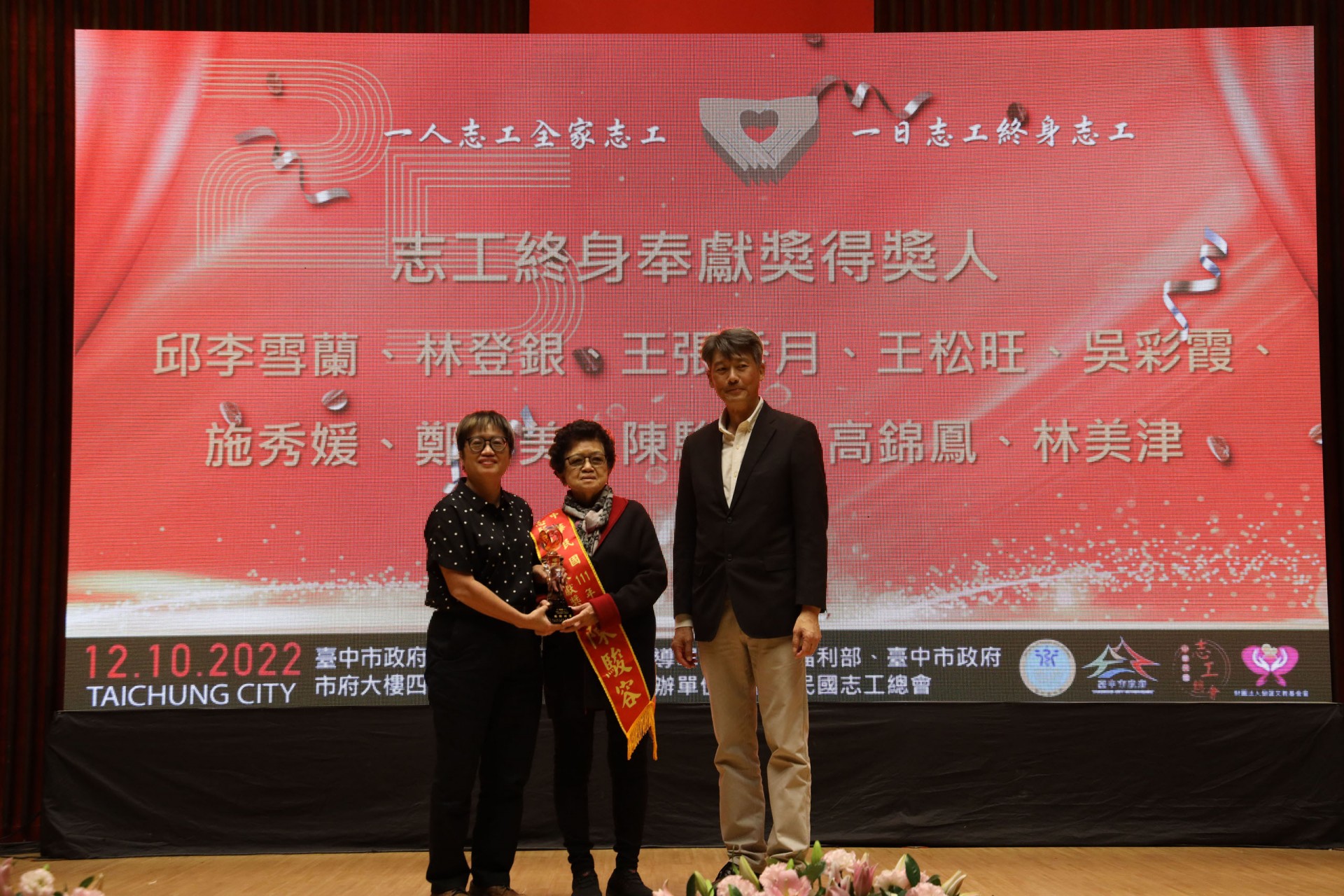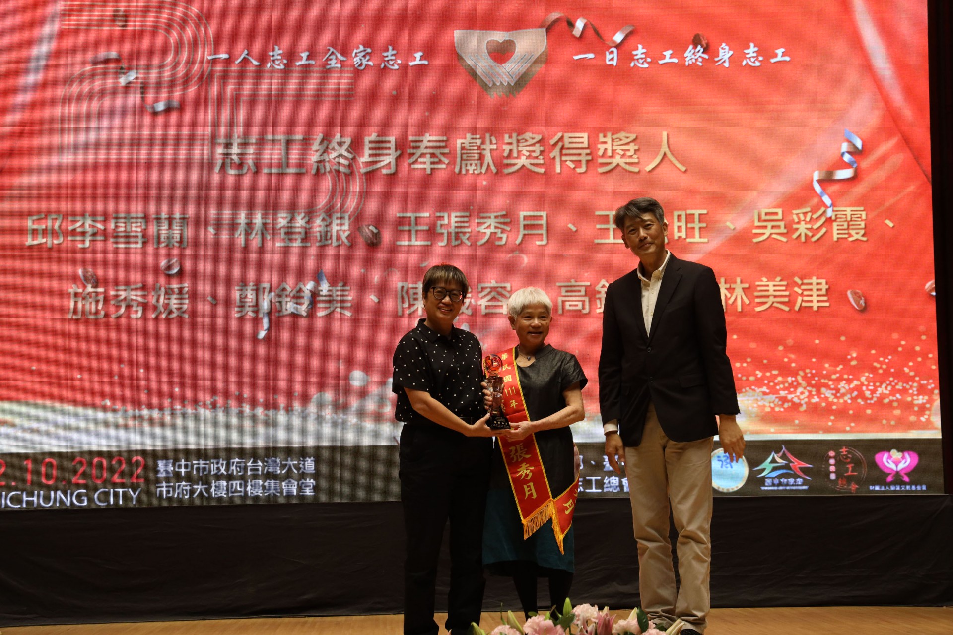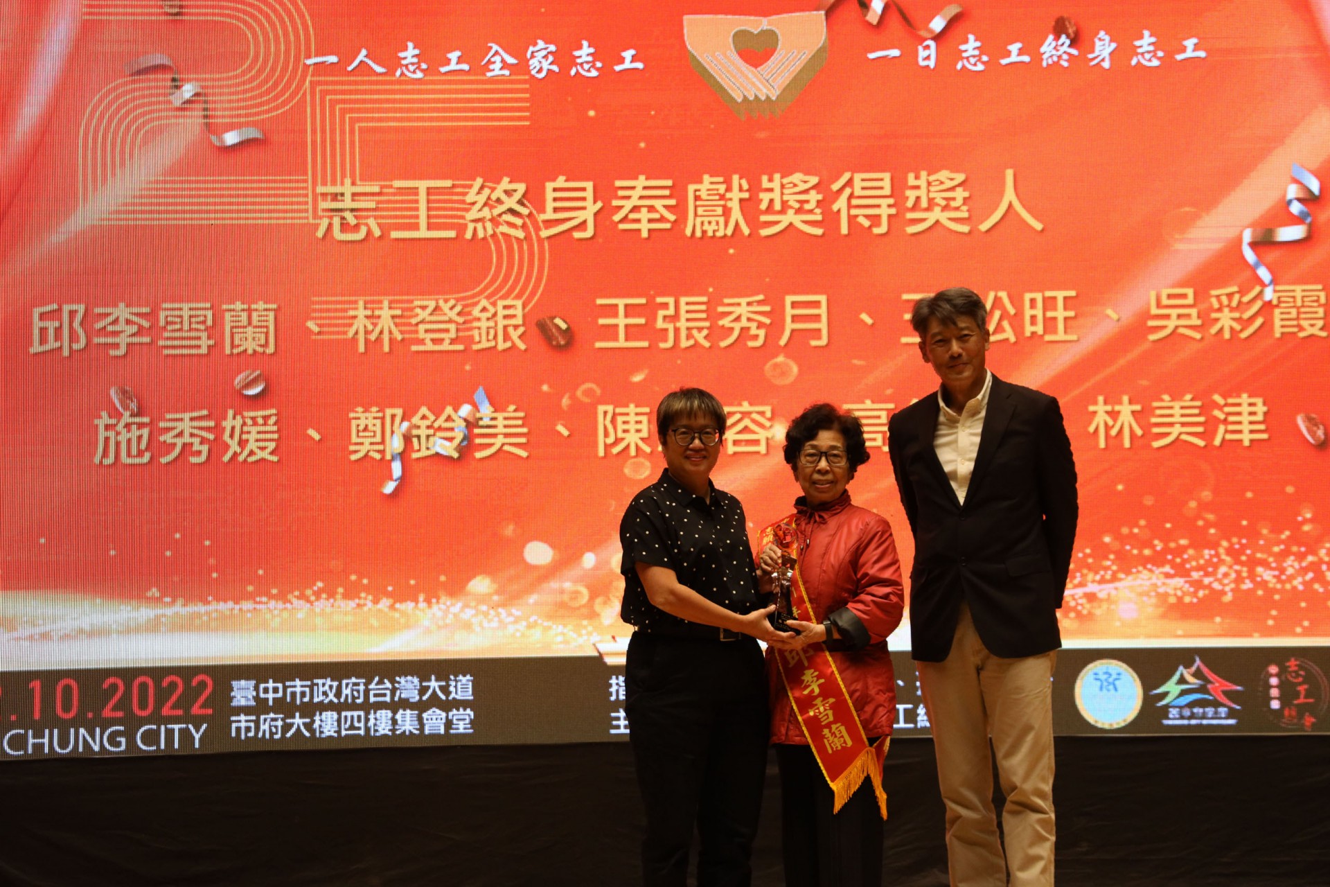 111年12月10日假台中市政府集會堂盛大辦理「111年模範志願服務家庭暨志工終身奉獻獎表揚大會」,本活動邀請全國各縣市政府及志願服務團體推薦的20個模範志願服務家庭及10位終身奉獻得獎人出席受獎,感謝台中市長盧秀燕、立法委員江啟臣、市議員劉士州出席,市議員沈佑蓮服務處也派代表到場祝福。快樂志工 有你真好!!