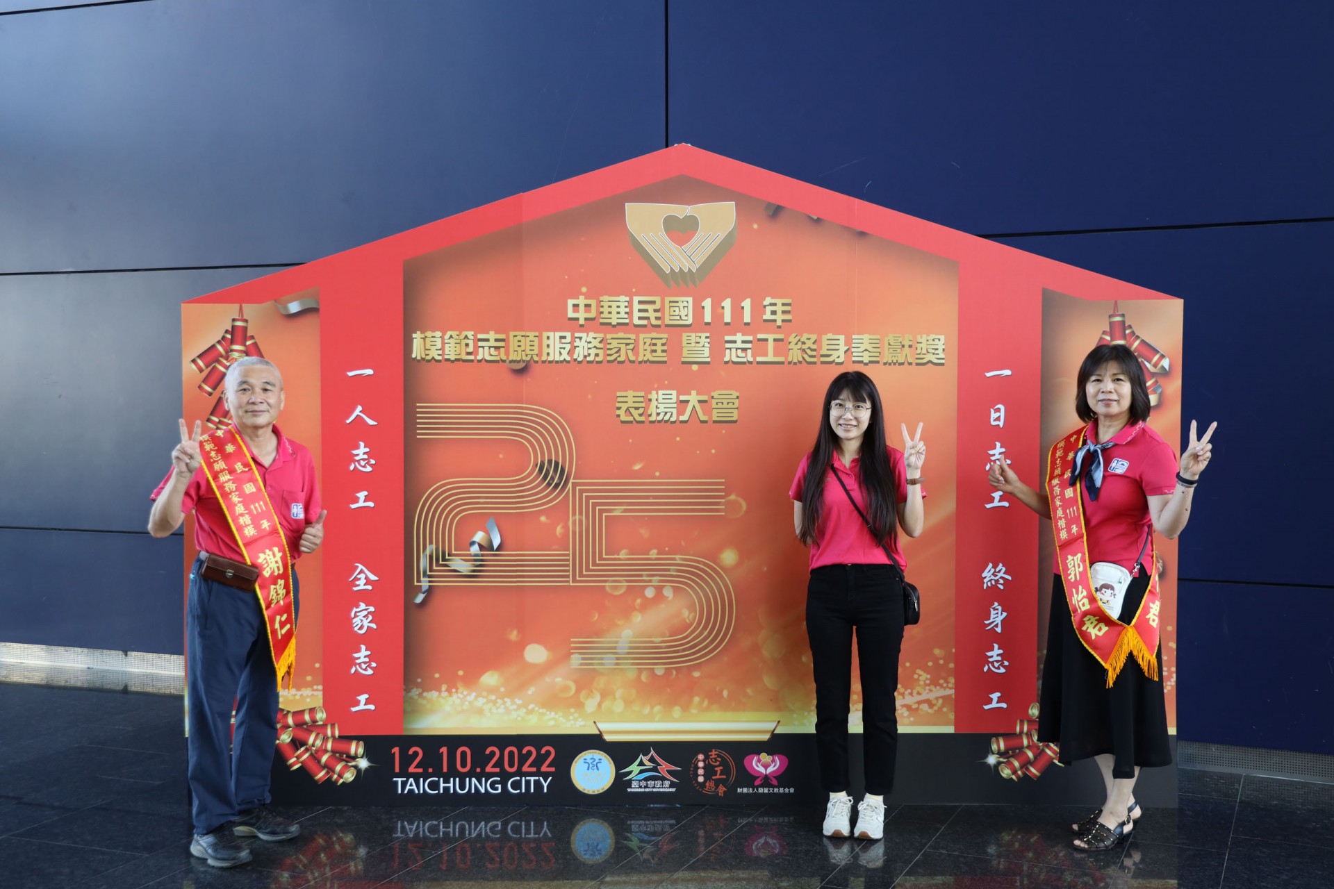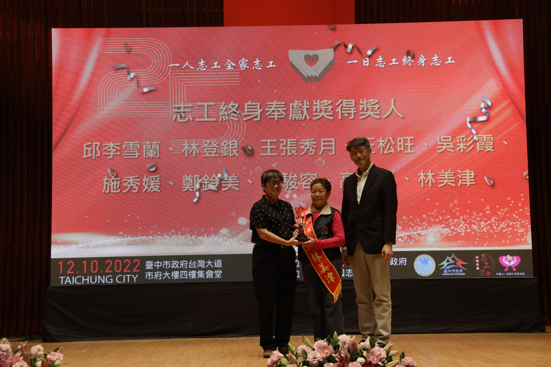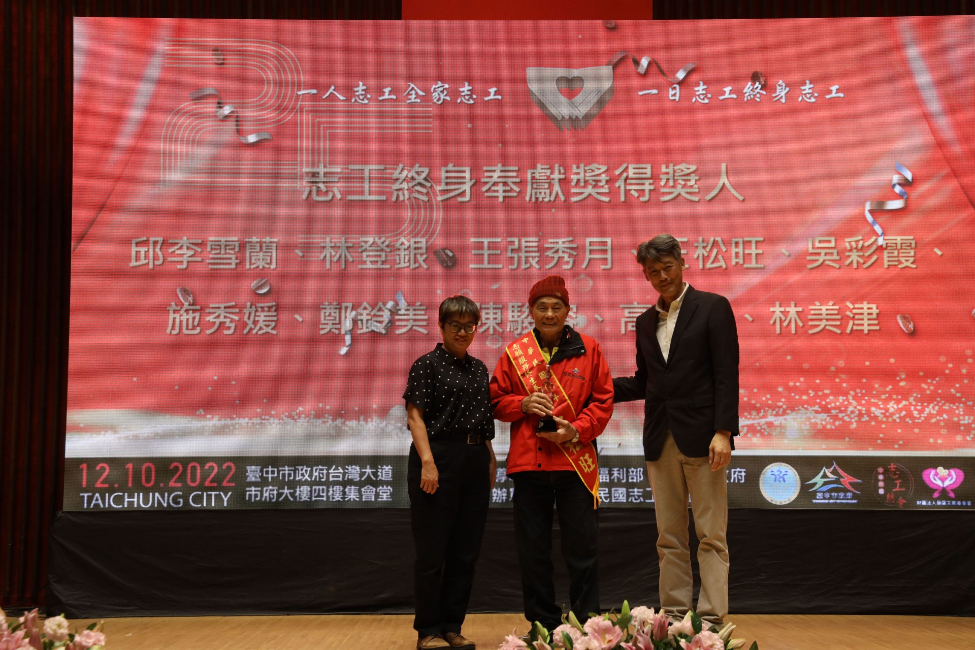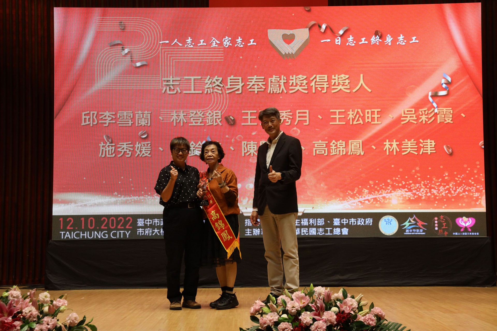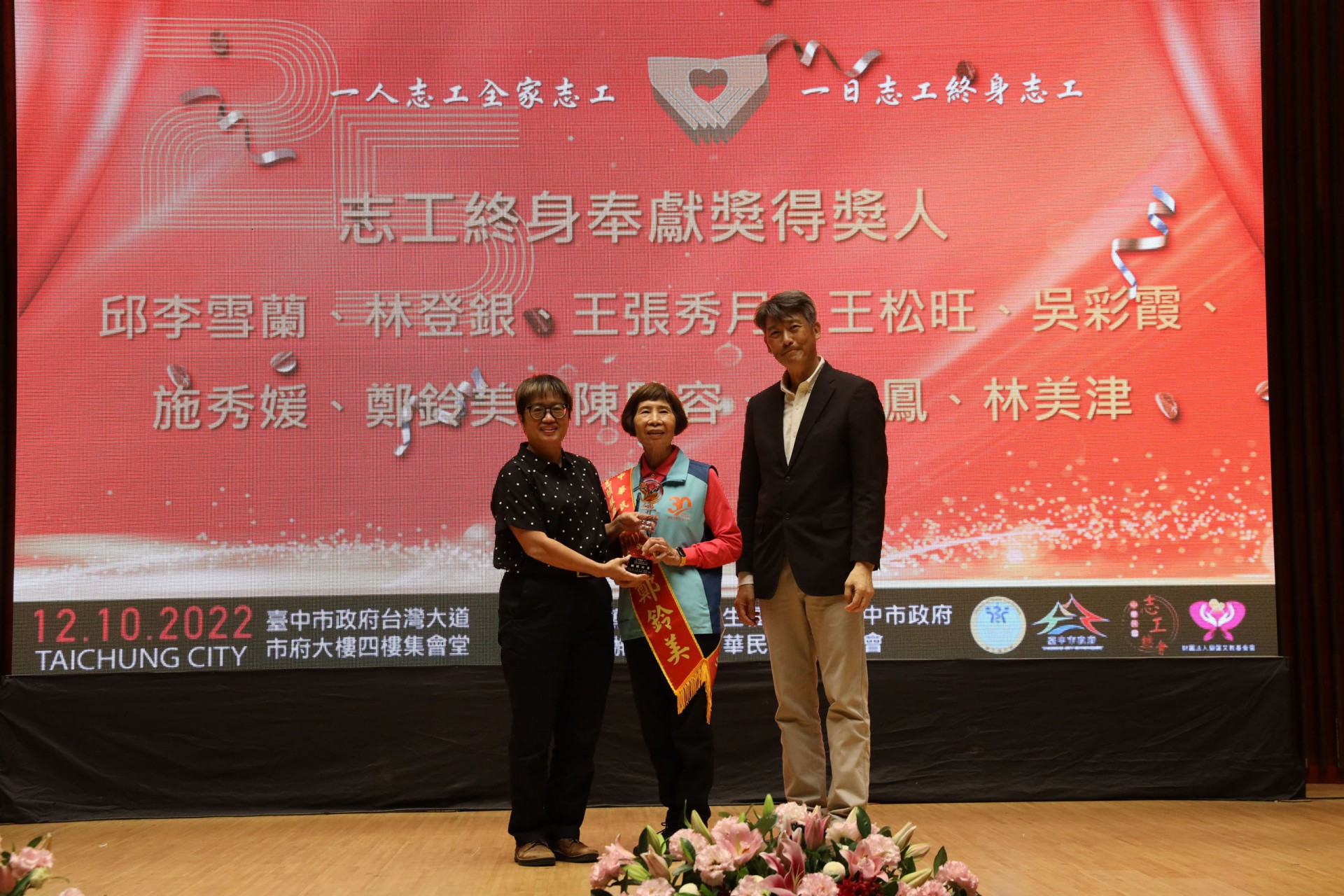 111年12月10日假台中市政府集會堂盛大辦理「111年模範志願服務家庭暨志工終身奉獻獎表揚大會」,本活動邀請全國各縣市政府及志願服務團體推薦的20個模範志願服務家庭及10位終身奉獻得獎人出席受獎,感謝台中市長盧秀燕、立法委員江啟臣、市議員劉士州出席,市議員沈佑蓮服務處也派代表到場祝福。快樂志工 有你真好!!