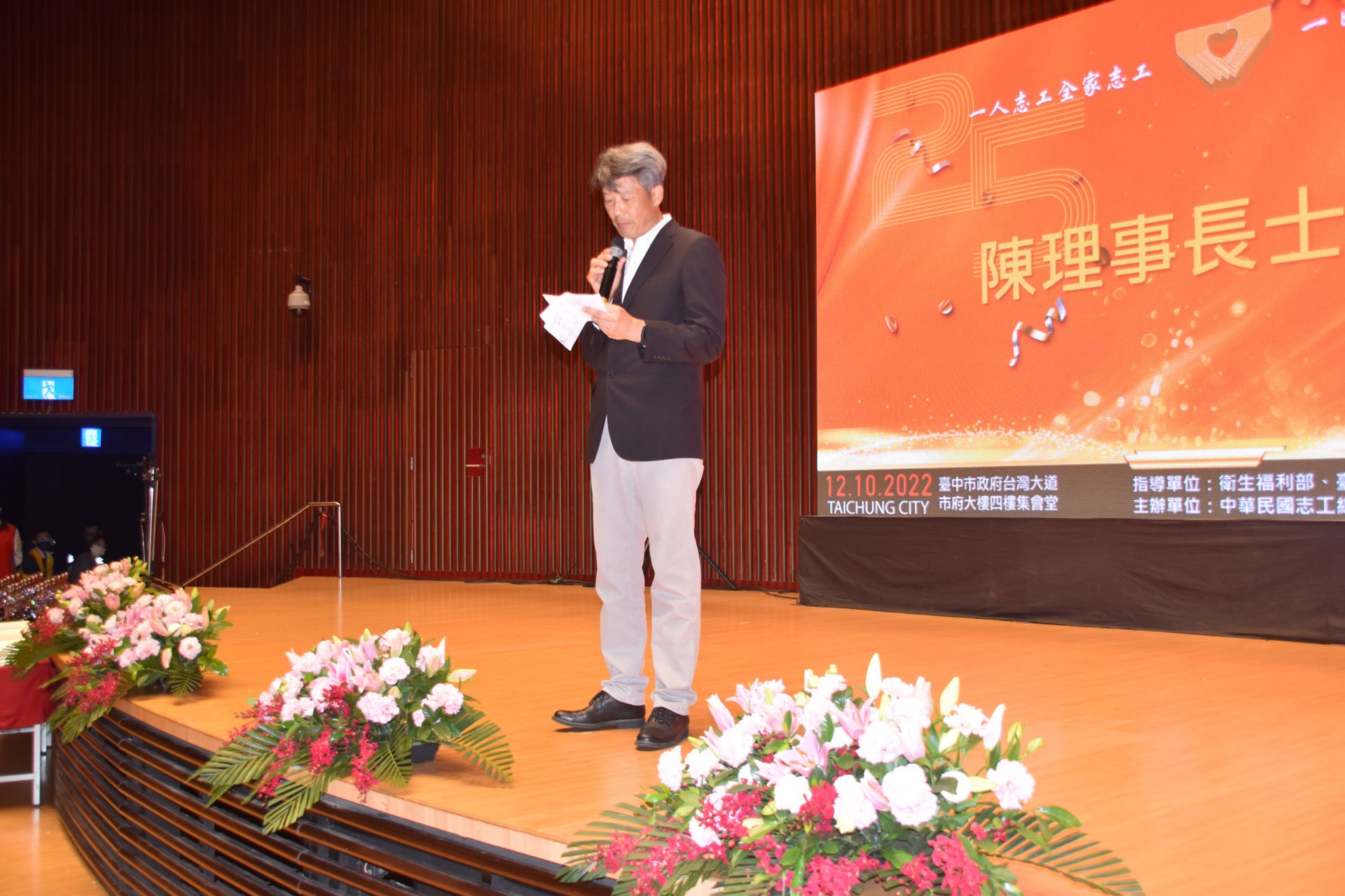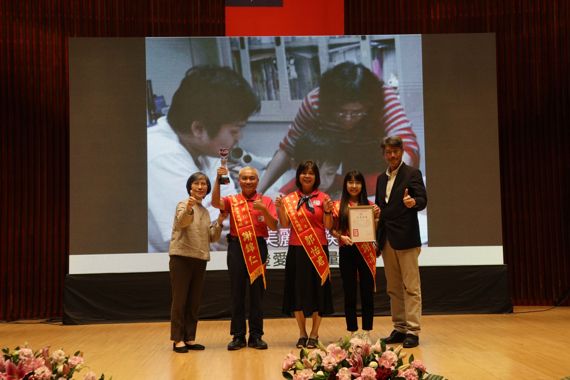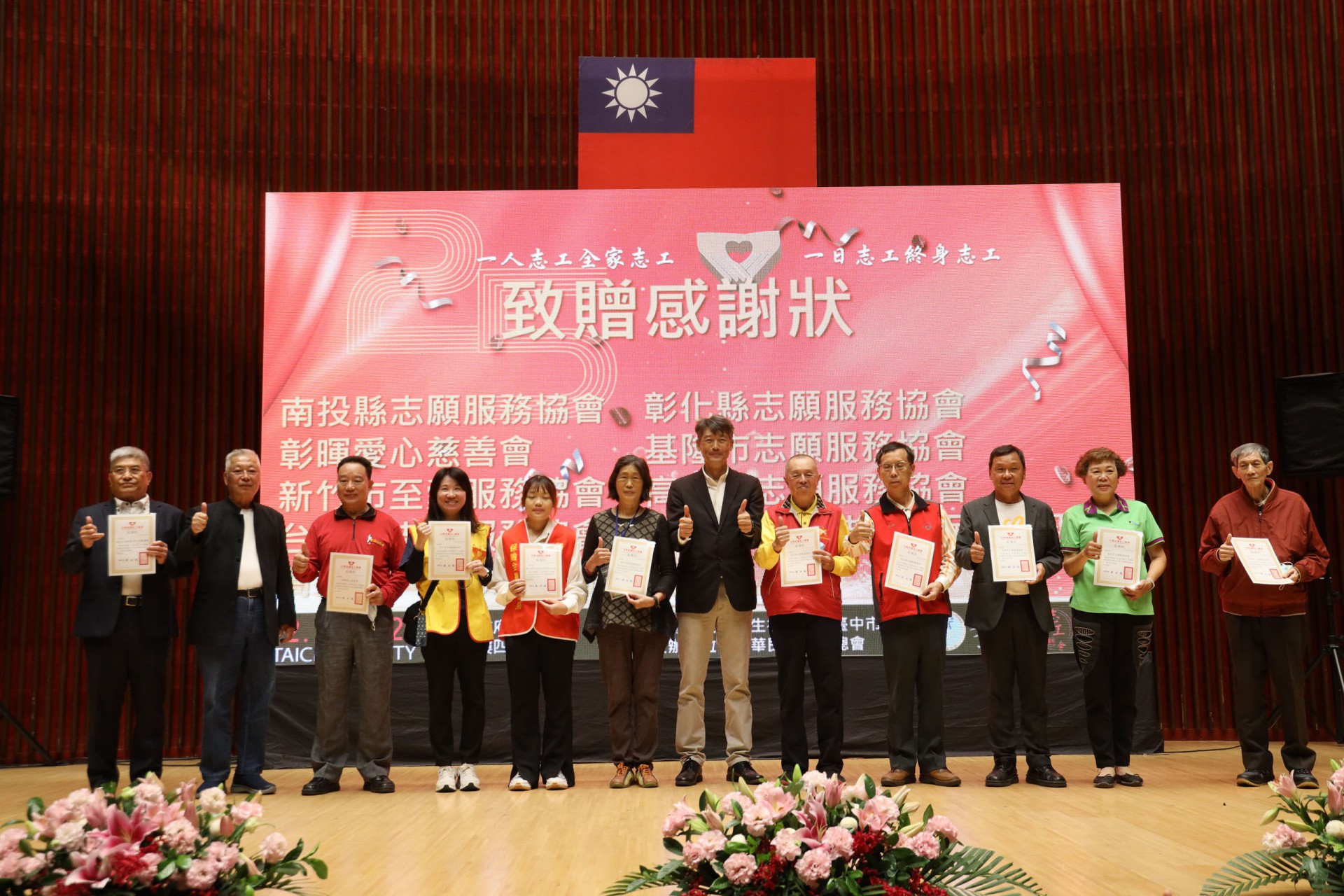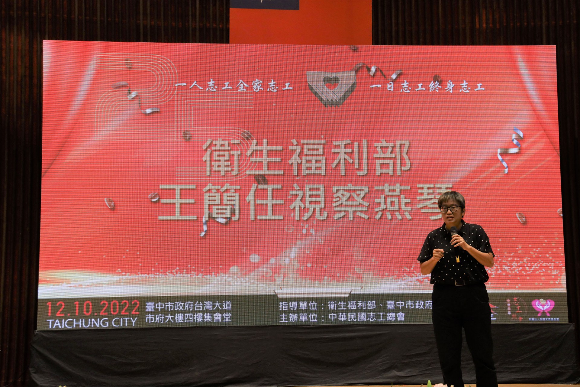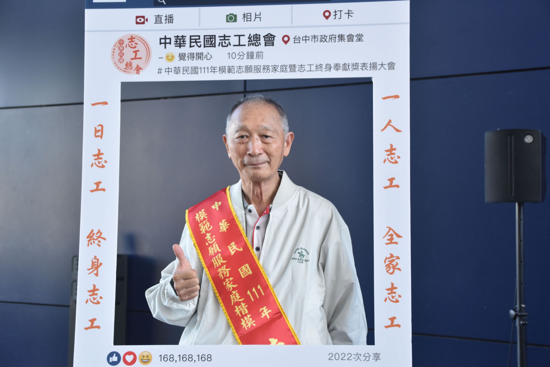 111年12月10日假台中市政府集會堂盛大辦理「111年模範志願服務家庭暨志工終身奉獻獎表揚大會」,本活動邀請全國各縣市政府及志願服務團體推薦的20個模範志願服務家庭及10位終身奉獻得獎人出席受獎,感謝台中市長盧秀燕、立法委員江啟臣、市議員劉士州出席,市議員沈佑蓮服務處也派代表到場祝福。快樂志工 有你真好!!