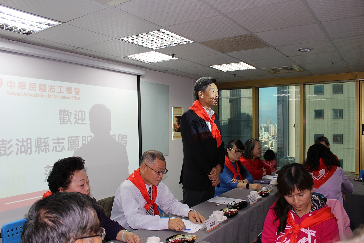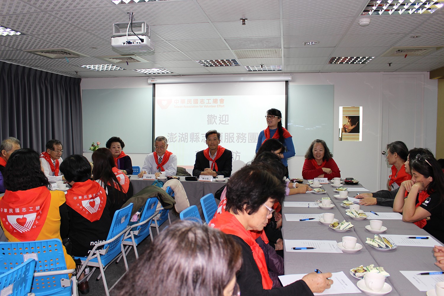 中華民國106年12月04日(星期一)下午3時整,假台中市台灣大道二段307號16樓 澎湖縣志願服務團體由縣政府涂雅玲社工員及澎湖縣志願服務協會陰玉玲總幹事率團22人蒞臨本會參訪。