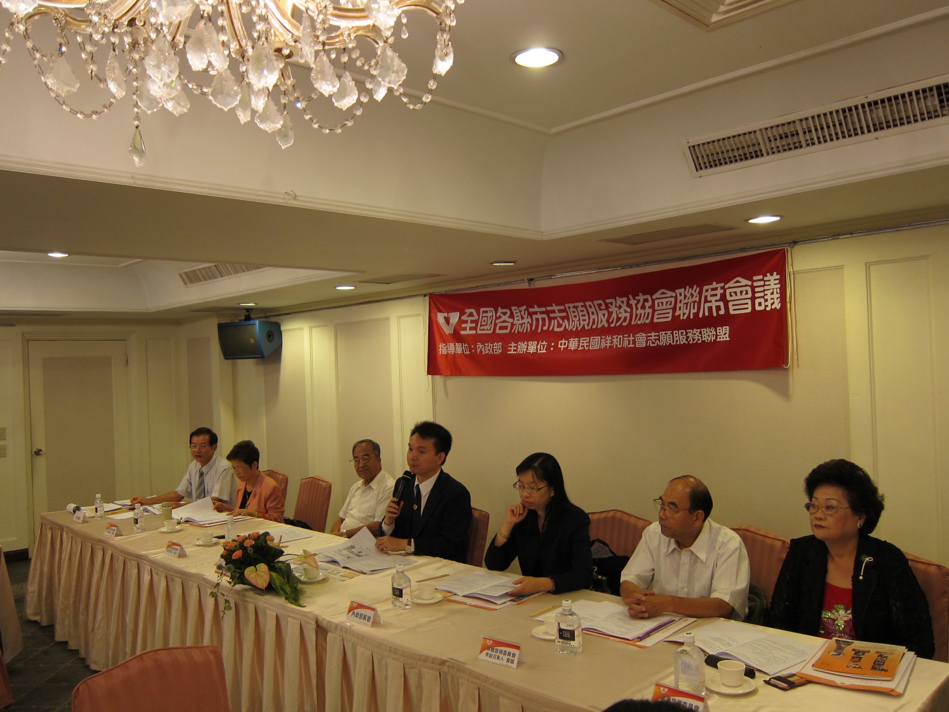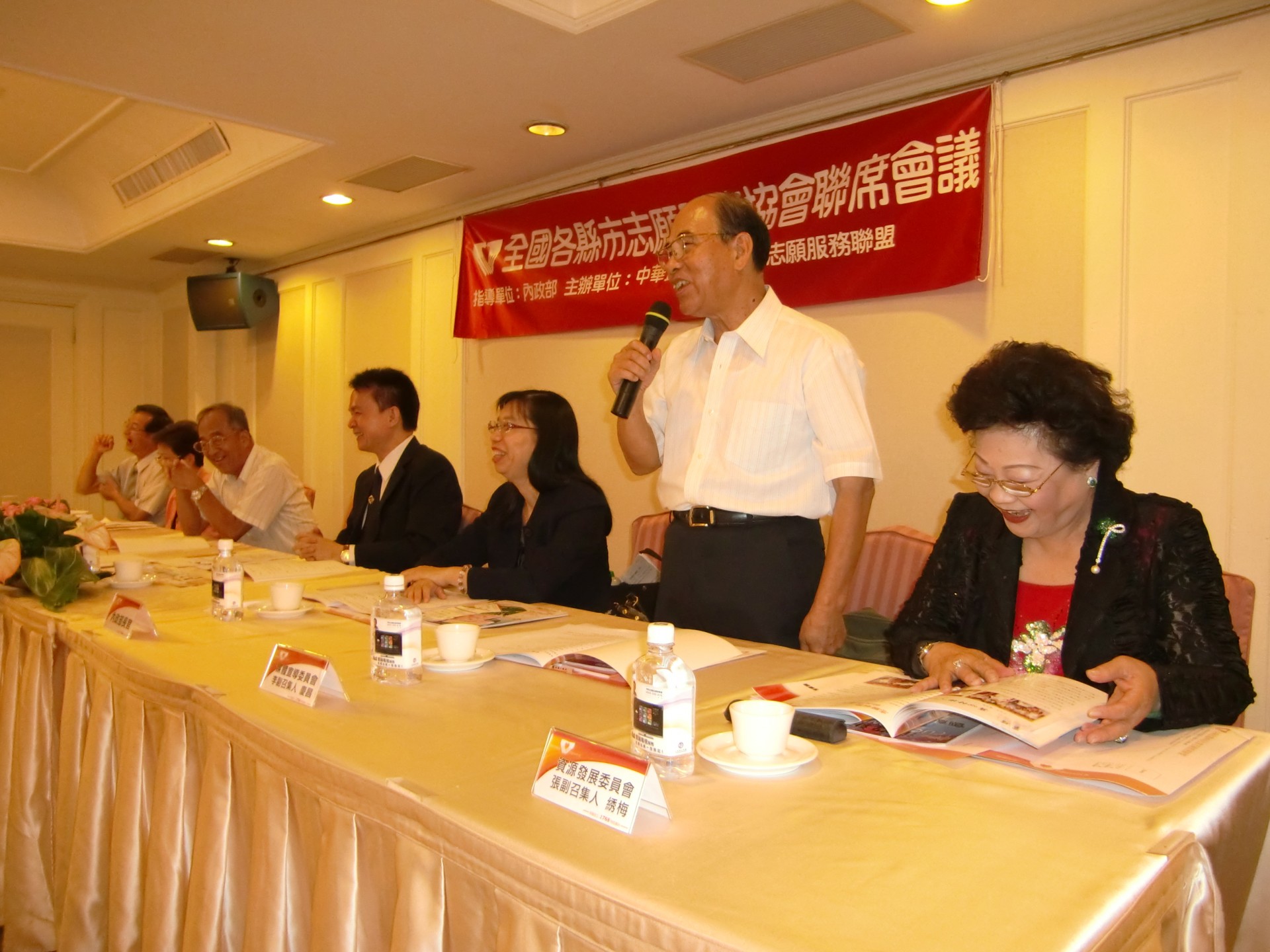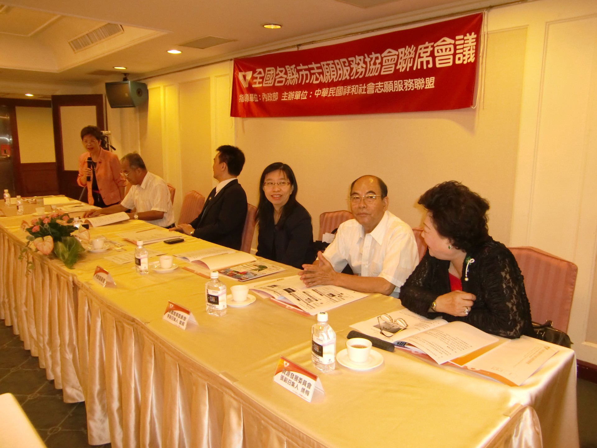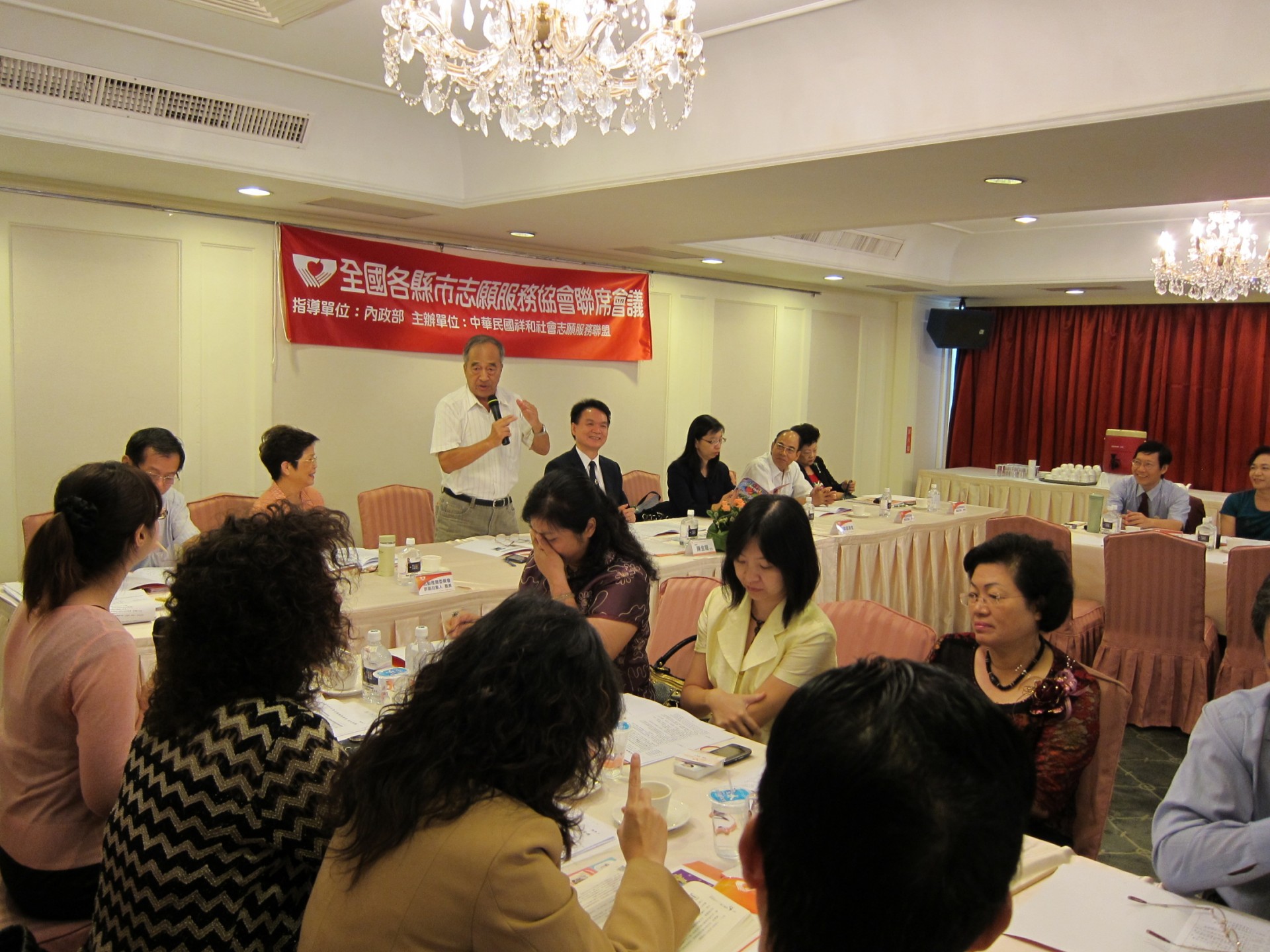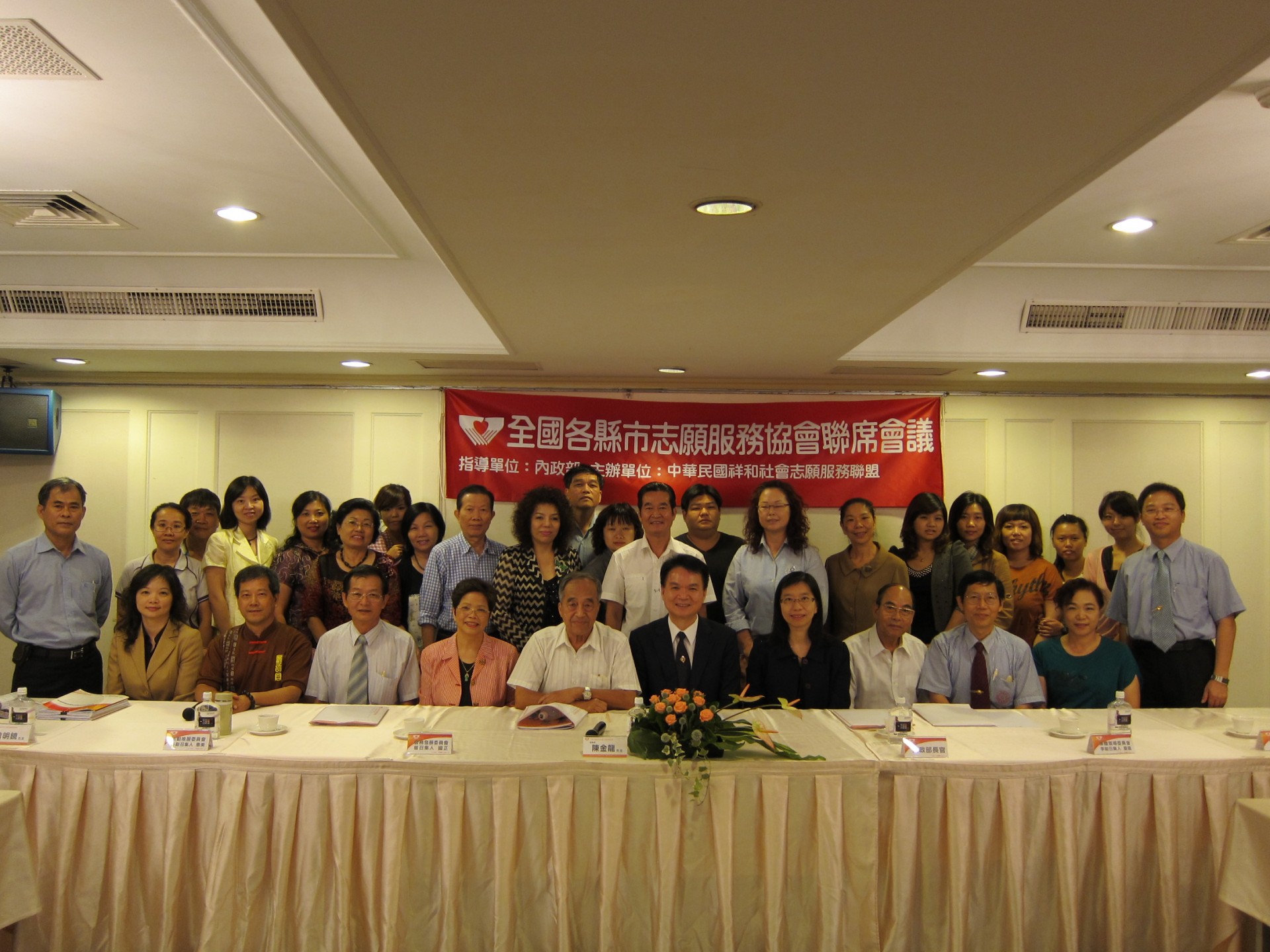 本次會議參加人員有:內政部:蔡科長適如、台東縣政府社會處:葛社工員君儀、屏東縣政府社會處:徐社工員紫雲、新竹縣志願服務協會:周理事長德君、何總幹事沛涵、苗栗縣志願服務協會:鄭常務理事伯利、林總幹事美智、鄭幹事智鴻、台中市志願服務協會:陳理事長禎顯、黃常務理事明河、蔡總幹事雪、吳副總幹事雅惠、彰化縣志願服務協會:陳輔導理事秀桃、許前理事長楚炘、南投縣志願服務協會:王秘書怡月、游助理竣雅、台南都志願服務協會:莊常務理事來春、高雄市志願服務協會:傅常務理事珍妮、許總幹事惠美、沈國際組組長佳玉、高雄第一志願服務協會:王常務理事勝枝、李理事耀德、程理事郁貞、顏監事鳳冠、屏東縣志願服務協會:鍾總幹事貴華、台東縣志願服務協會:陳社工員淑君、澎湖縣志願服務協會:陰總幹事玉玲、中華民國祥和社會志願服務聯盟:陳理事長金龍、曾秘書長明鏡、林副秘書長明銓、陳秘書姵亨、會務發展委員會:曾召集人國正、活動推展委員會:許副召集人惠美、資源開發委員會:張副召集人綉梅、媒體宣導委員會:李副召集人慶昌。